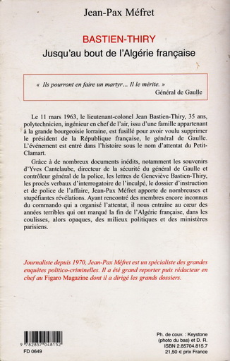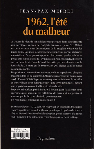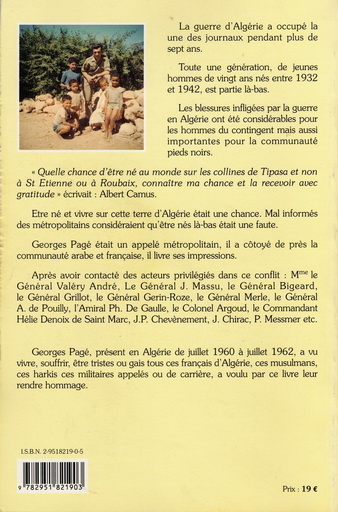 La galerie ci-après, présente une centaines d'ouvrages relatifs à la guerre d'Algérie. Pour chaque ouvrage référencé dans cette liste, on trouvera la photo de la 1ère et la derniere de couverture. Ce qui permet, dans la plupart des cas d'avoir un aperçu plus ou moins précis sur le contenu.